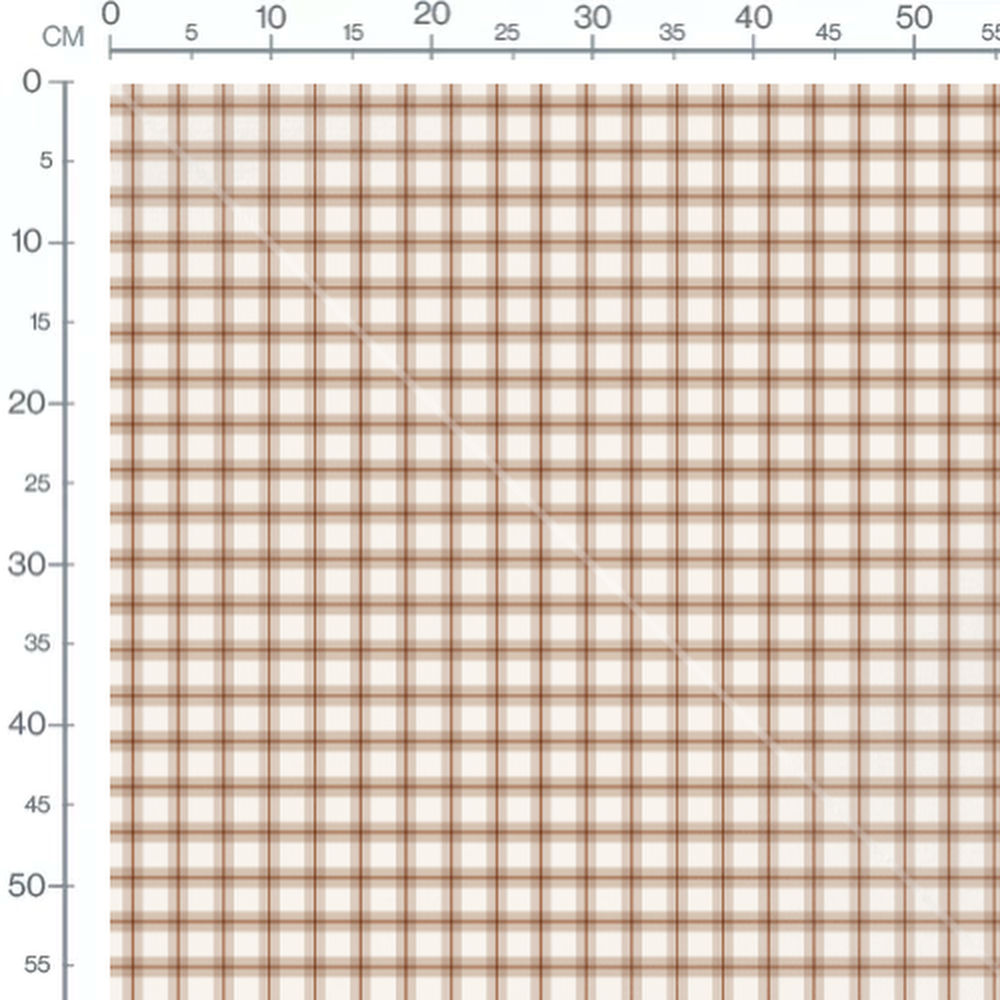 Les lignes marron et beige forment un motif de carreaux. Le fond blanc met en valeur le contraste des couleurs.Les tissus