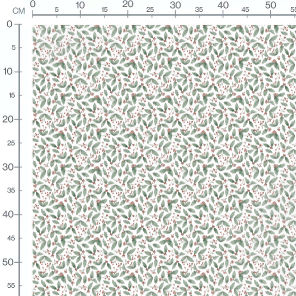 Les feuilles sont de différentes formes et nuances de vert. Les baies rouges ajoutent une touche de couleur vive au motif.Les tissus
