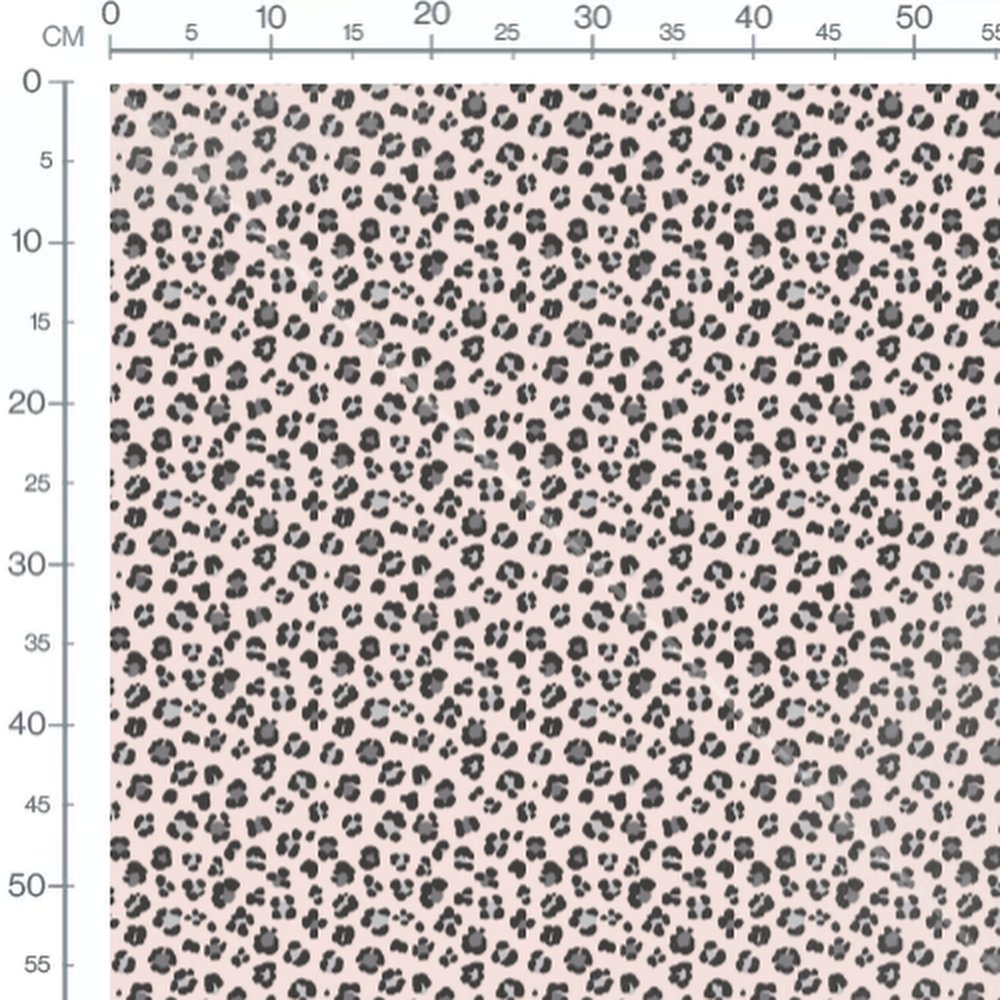 Les taches sont de tailles variées, créant un effet dynamique. Le fond rose pâle adoucit l'ensemble du motif.Les tissus