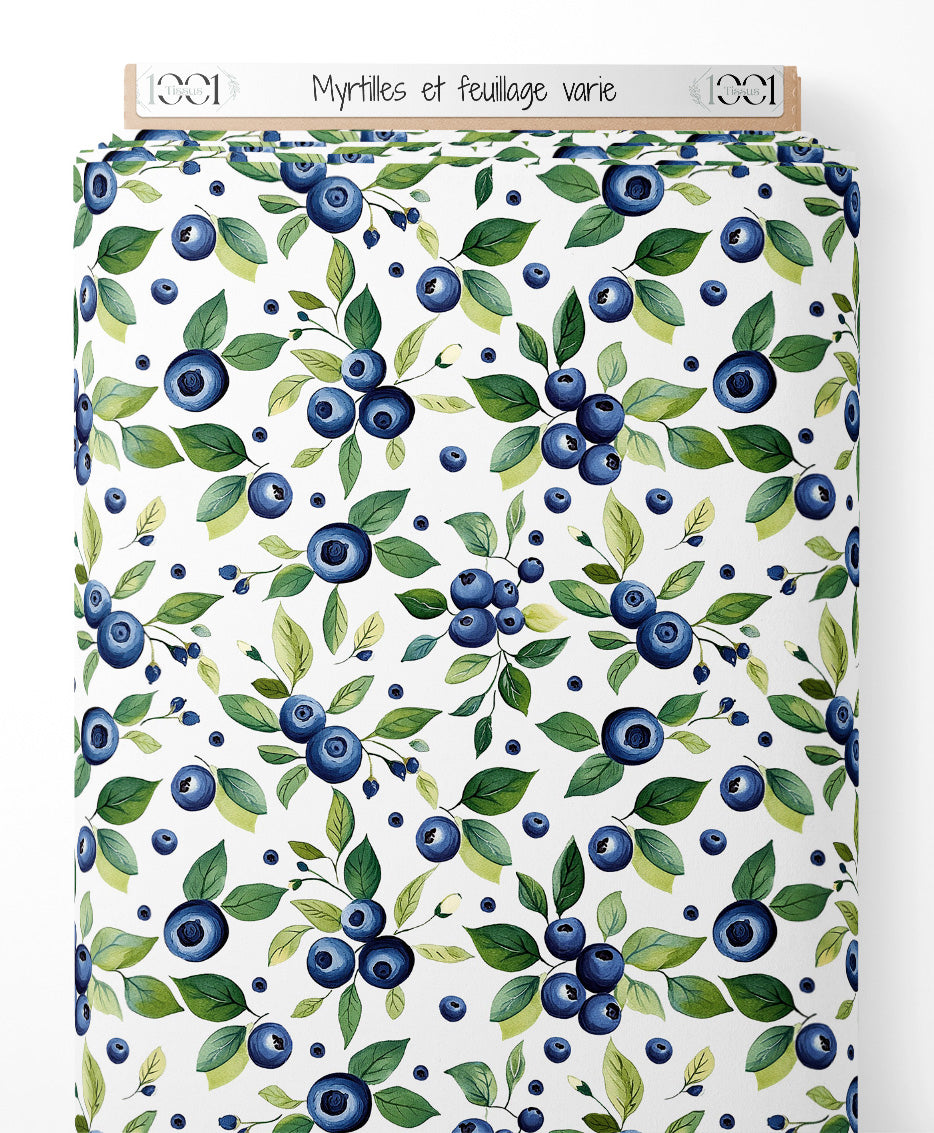 Tissu - Myrtilles et feuillage varié