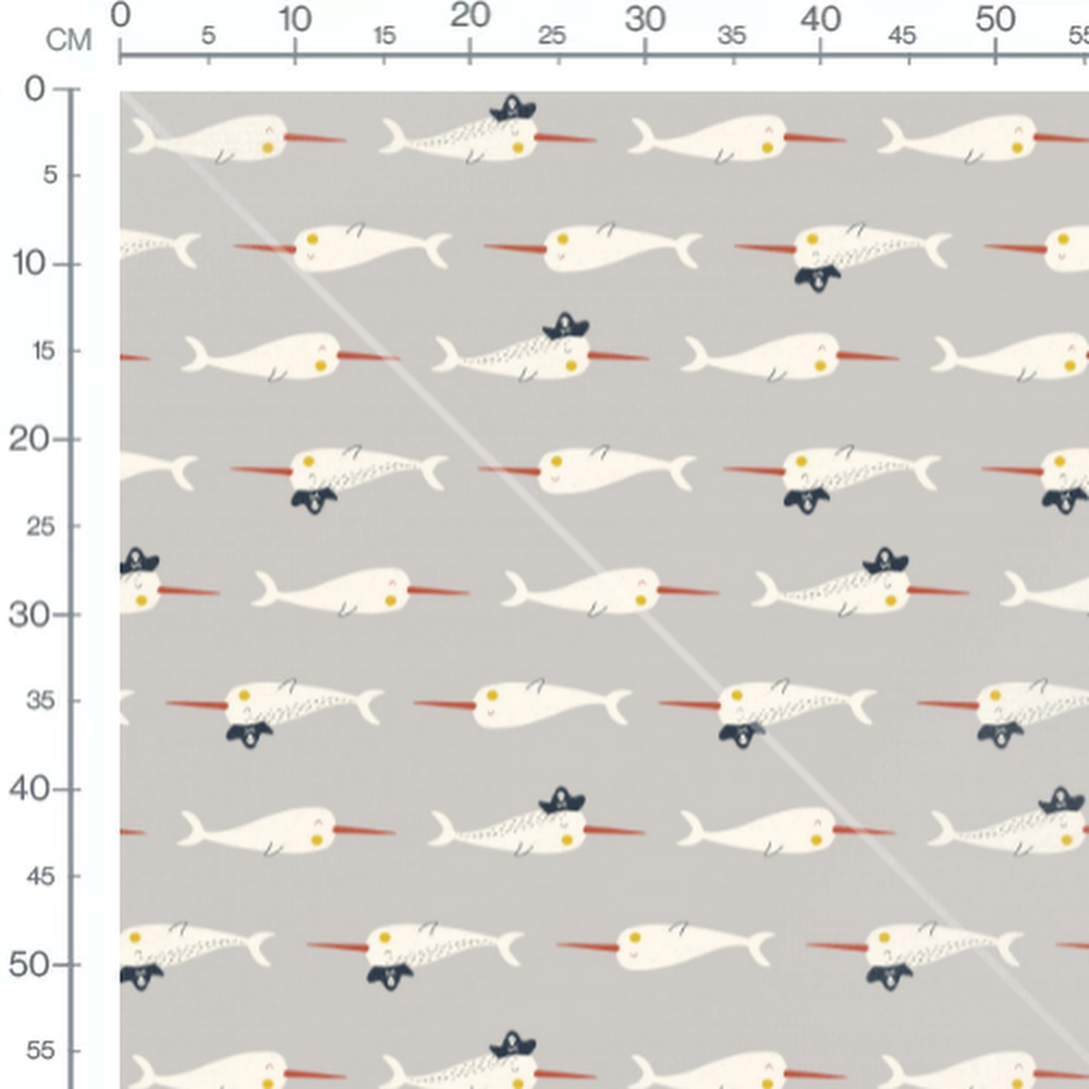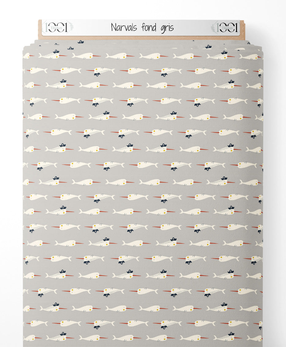 Tissu - Narvals sur fond gris