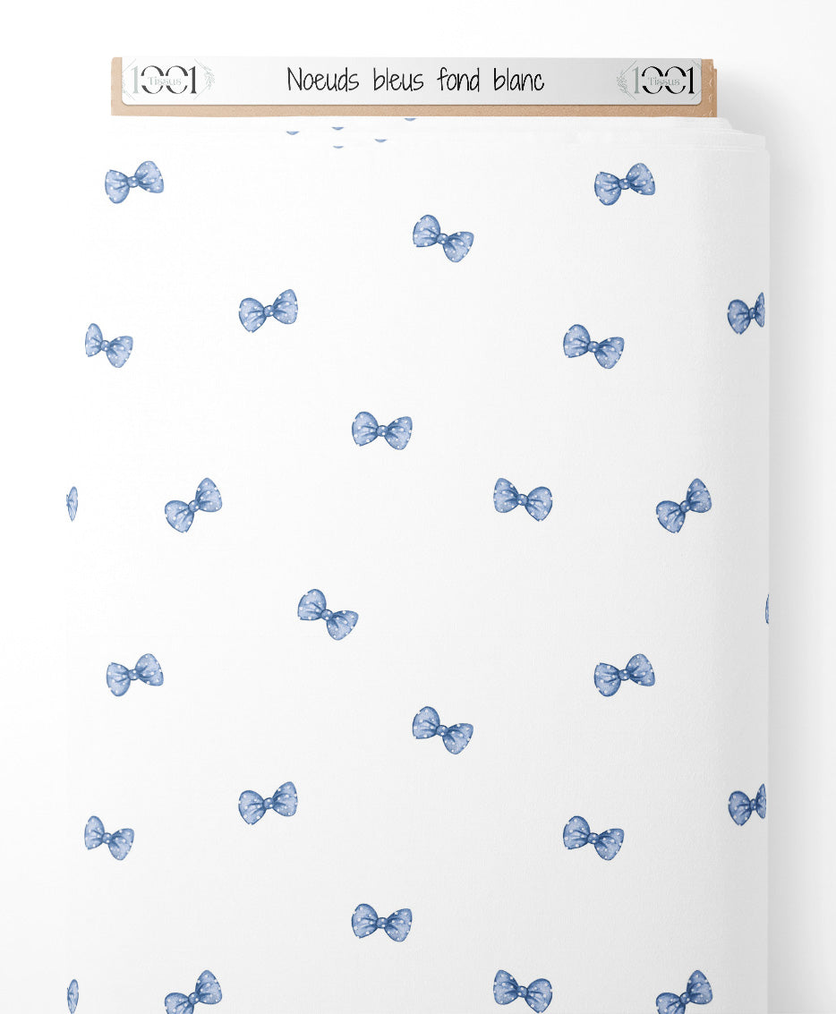 Nœuds papillon bleus sur fond blanc. Petits motifs répétés uniformément.Les tissus