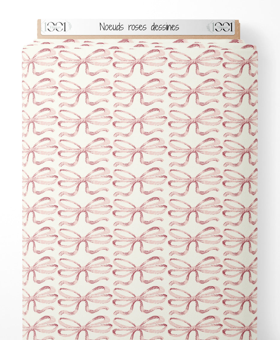 Tissu - Nœuds roses dessinés