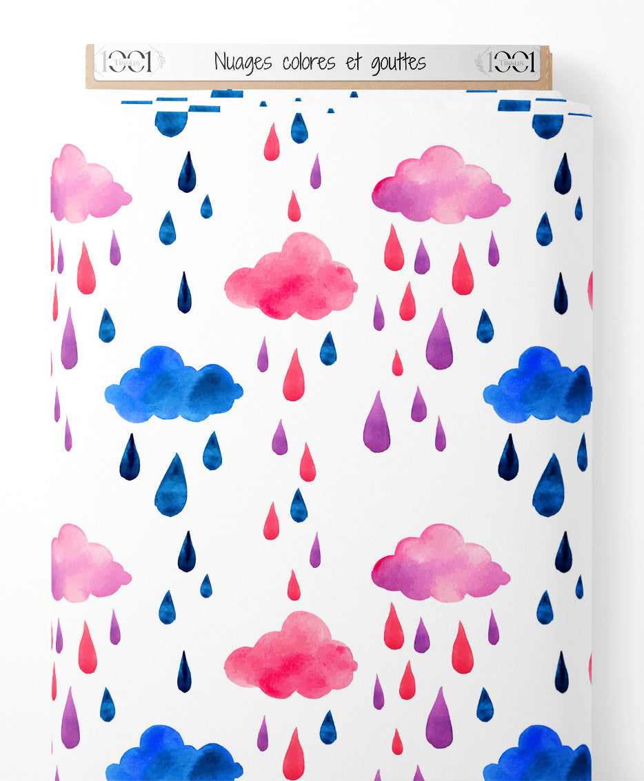 Tissu - Nuages colorés et gouttes