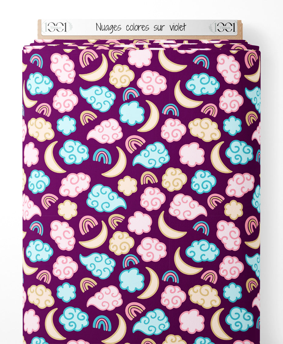 Tissu - Nuages colorés sur violet