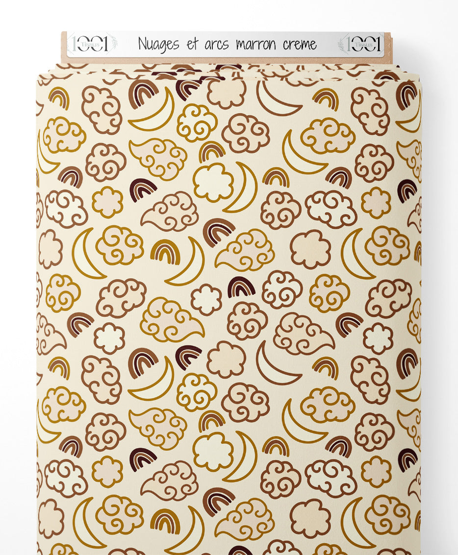 Les nuages sont dessinés avec des lignes courbes et élégantes. Les arcs et croissants ajoutent une touche géométrique au motif.Les tissus
