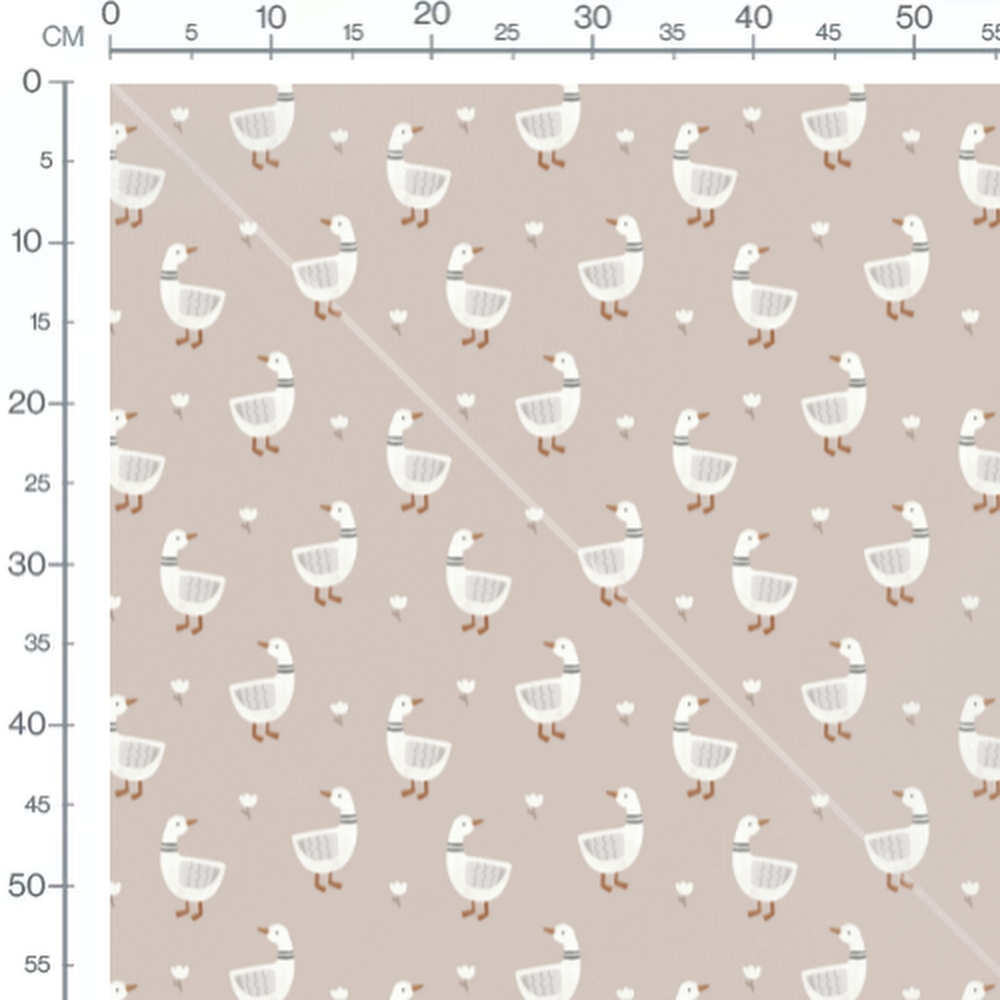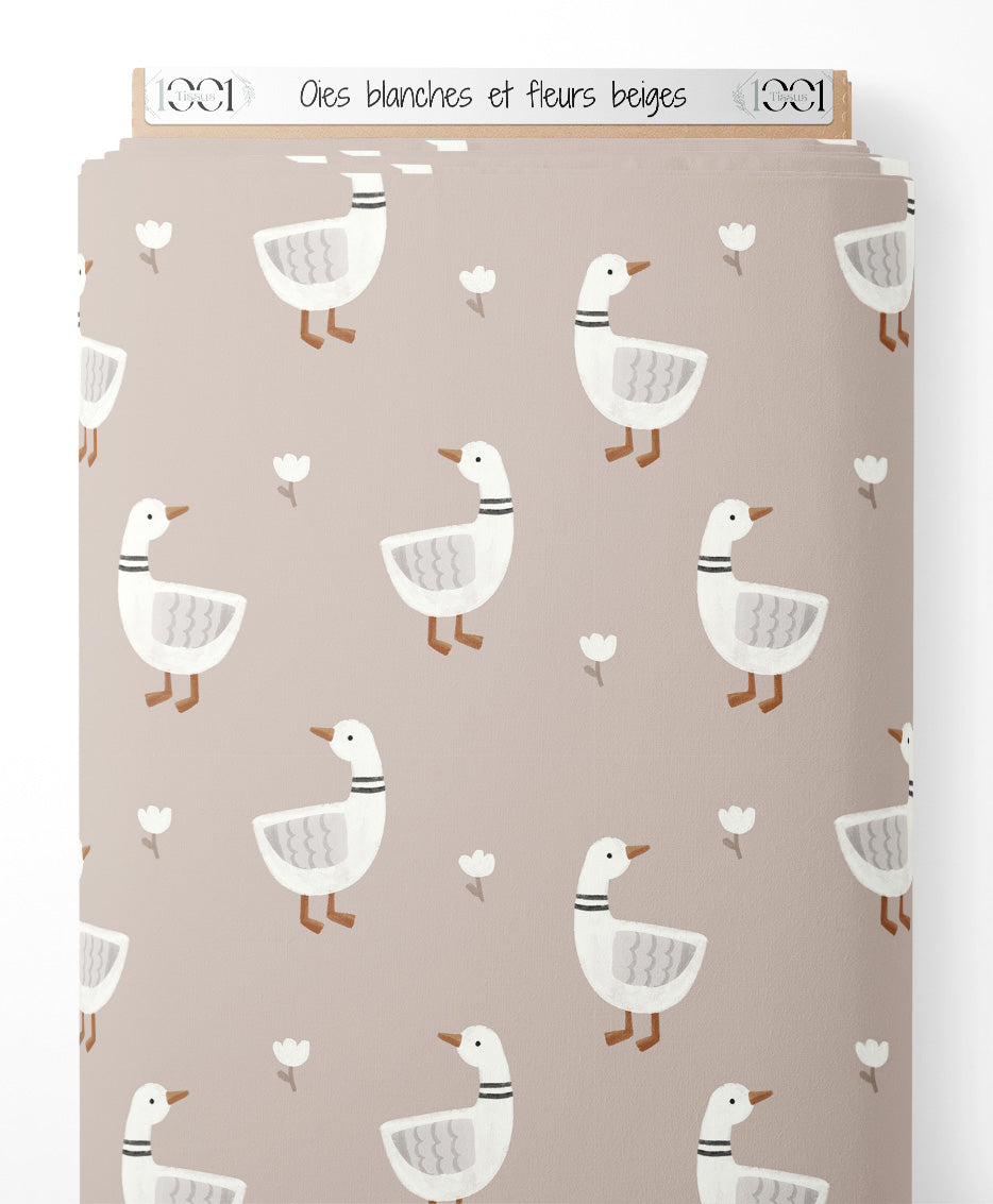 Les oies ont des détails gris sur leurs ailes et des lignes noires autour du cou. Les fleurs sont simples avec des pétales arrondis.Les tissus