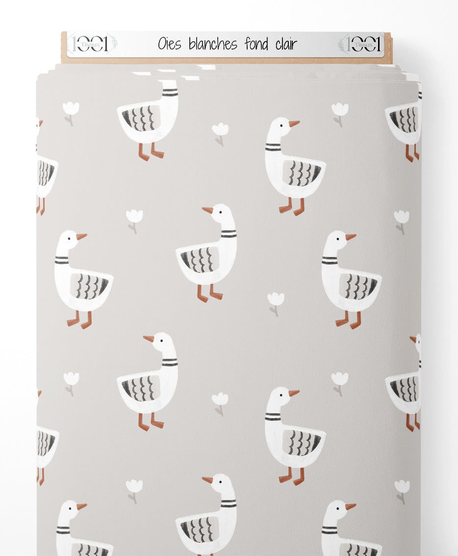 Tissu - Oies blanches sur fond clair