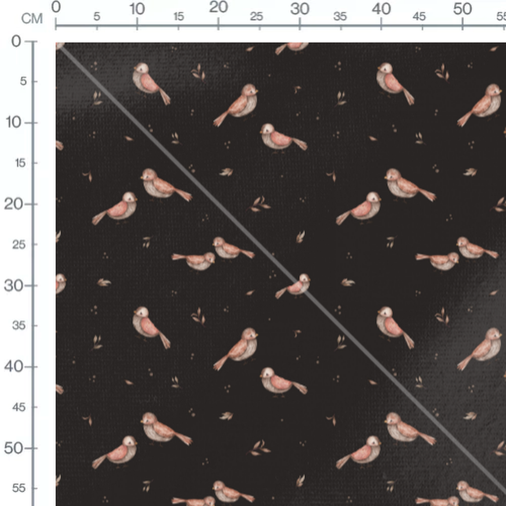 Tissu - Oiseaux doux et feuilles sombres