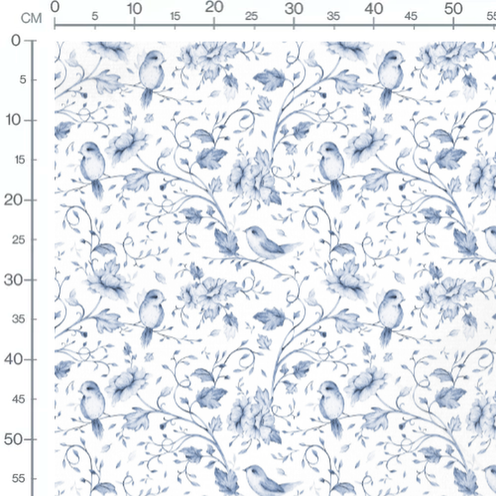 Tissu - Oiseaux et feuillages bleus