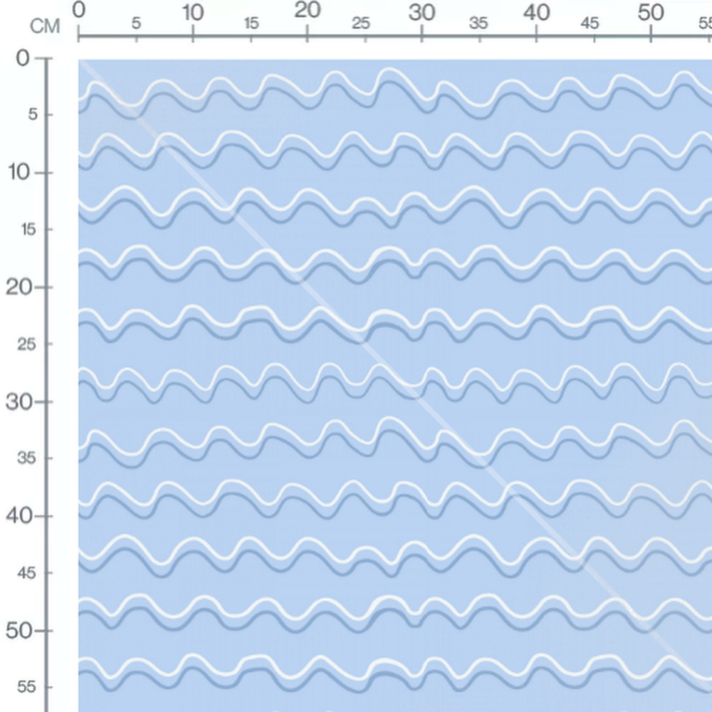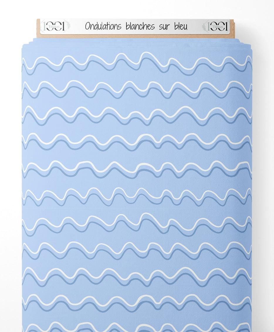 Les ondulations blanches créent un effet de mouvement sur le fond bleu. Le contraste entre le blanc et le bleu ajoute une touche de fraîcheur au motif.Les tissus