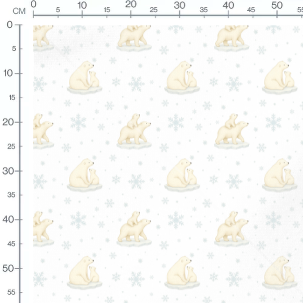 Les ours polaires sont assis sur des blocs de glace. Les flocons de neige ajoutent une touche hivernale au motif.Les tissus