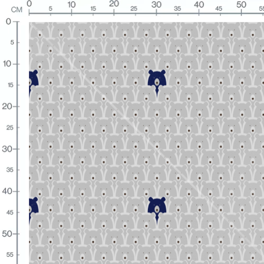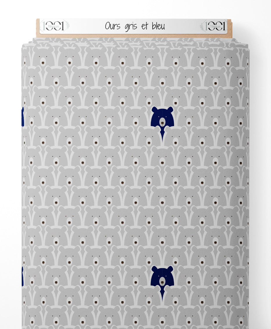 Les ours sont disposés de manière répétitive sur le fond. Les ours bleus ajoutent une touche de contraste au motif.Les tissus