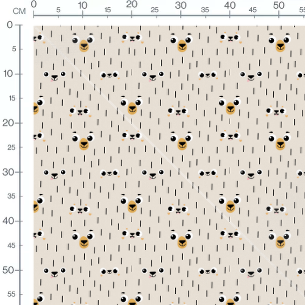 Les visages d'ours ont des expressions variées avec des yeux ronds et des museaux noirs. Les petits cœurs orange ajoutent une touche de douceur au motif.Les tissus