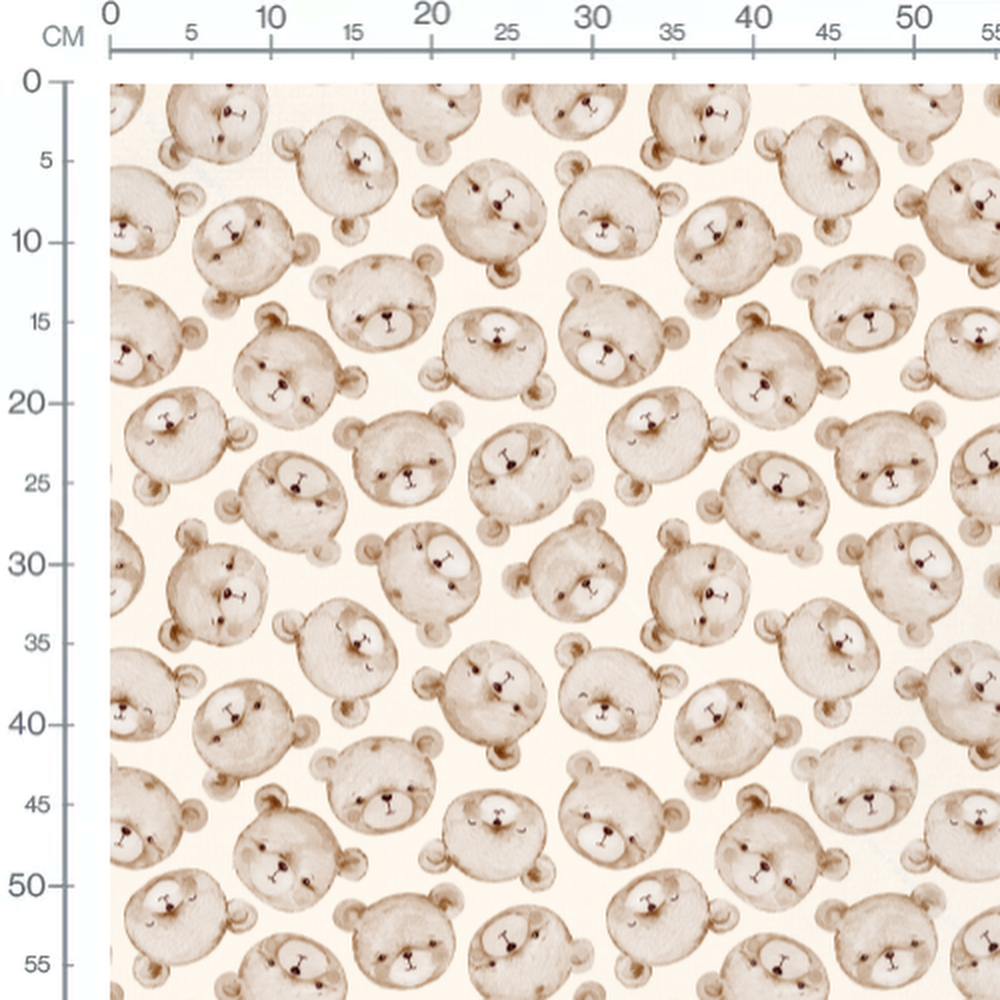 Les têtes d'ours sont rondes avec des oreilles proéminentes. Chaque ours arbore un visage souriant ou curieux, ajoutant une touche ludique au motif.Les tissus