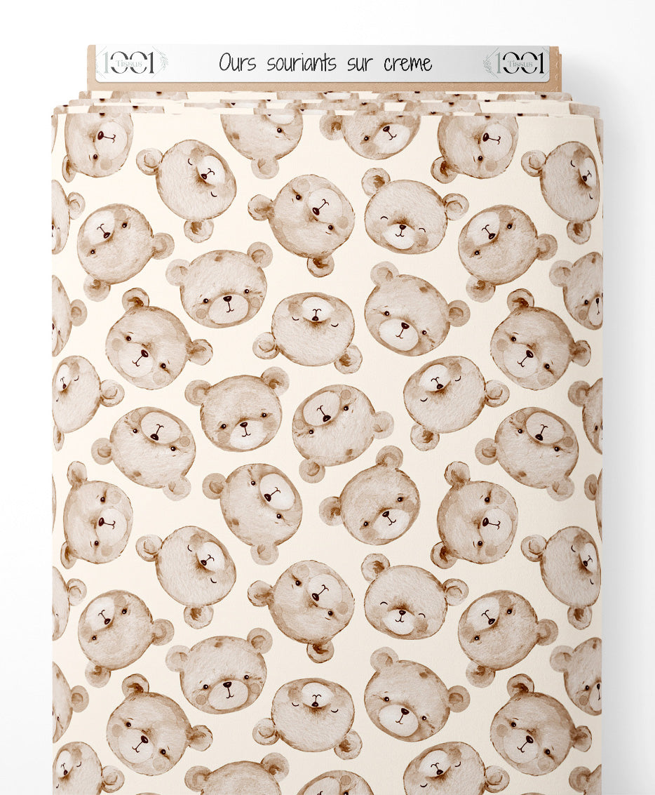 Tissu - Ours souriants sur crème