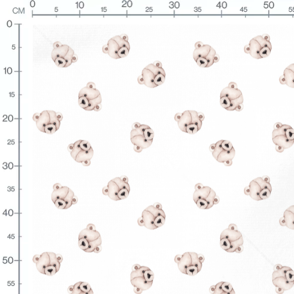 Tissu - Oursons beiges doux sur blanc