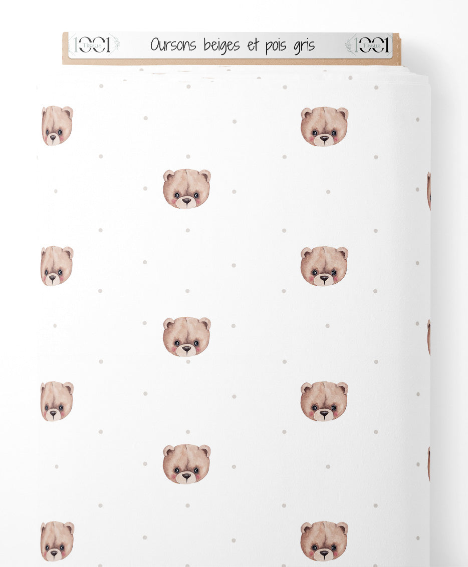 Tissu - Oursons beiges et pois gris
