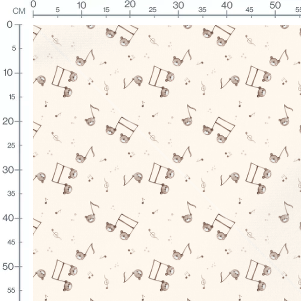 Les oursons sont dessinés dans des tons bruns doux. Les notes de musique et les symboles ajoutent une touche ludique au motif.Les tissus