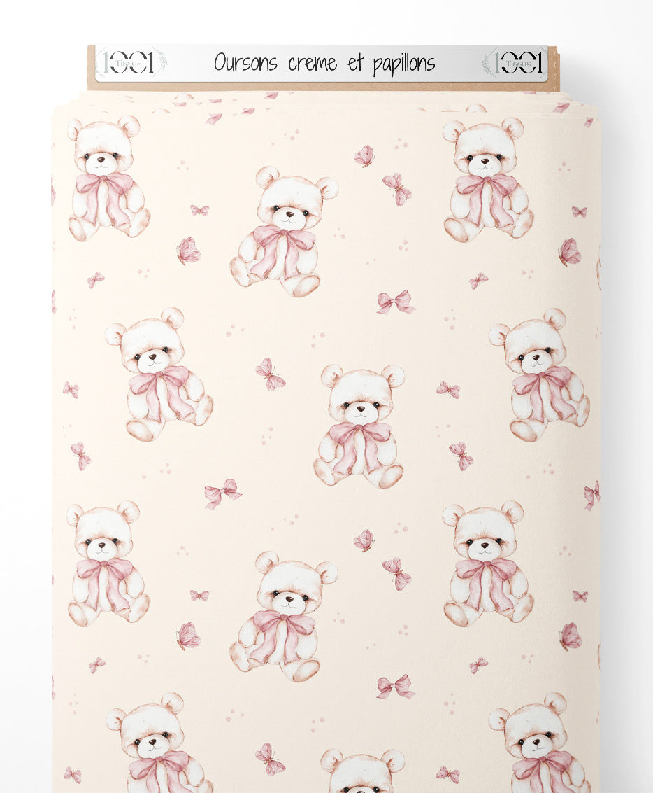 Tissu - Oursons crème et papillons