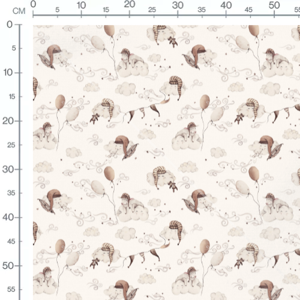 Les oursons bruns semblent espiègles, cachés dans des tasses bleues. Le fond est composé de grands carreaux bleus clairs. De petites étoiles grises ajoutent une touche de fantaisie au motif.Les tissus