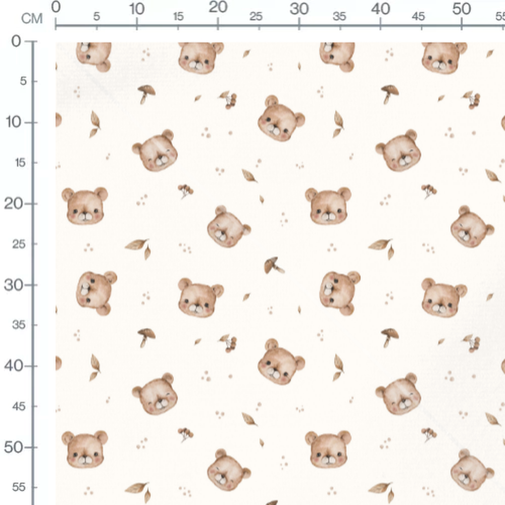 Tissu - Oursons doux et champignons clairs