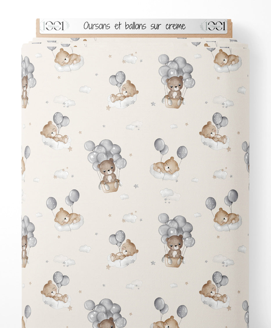 Tissu - Oursons et ballons sur crème