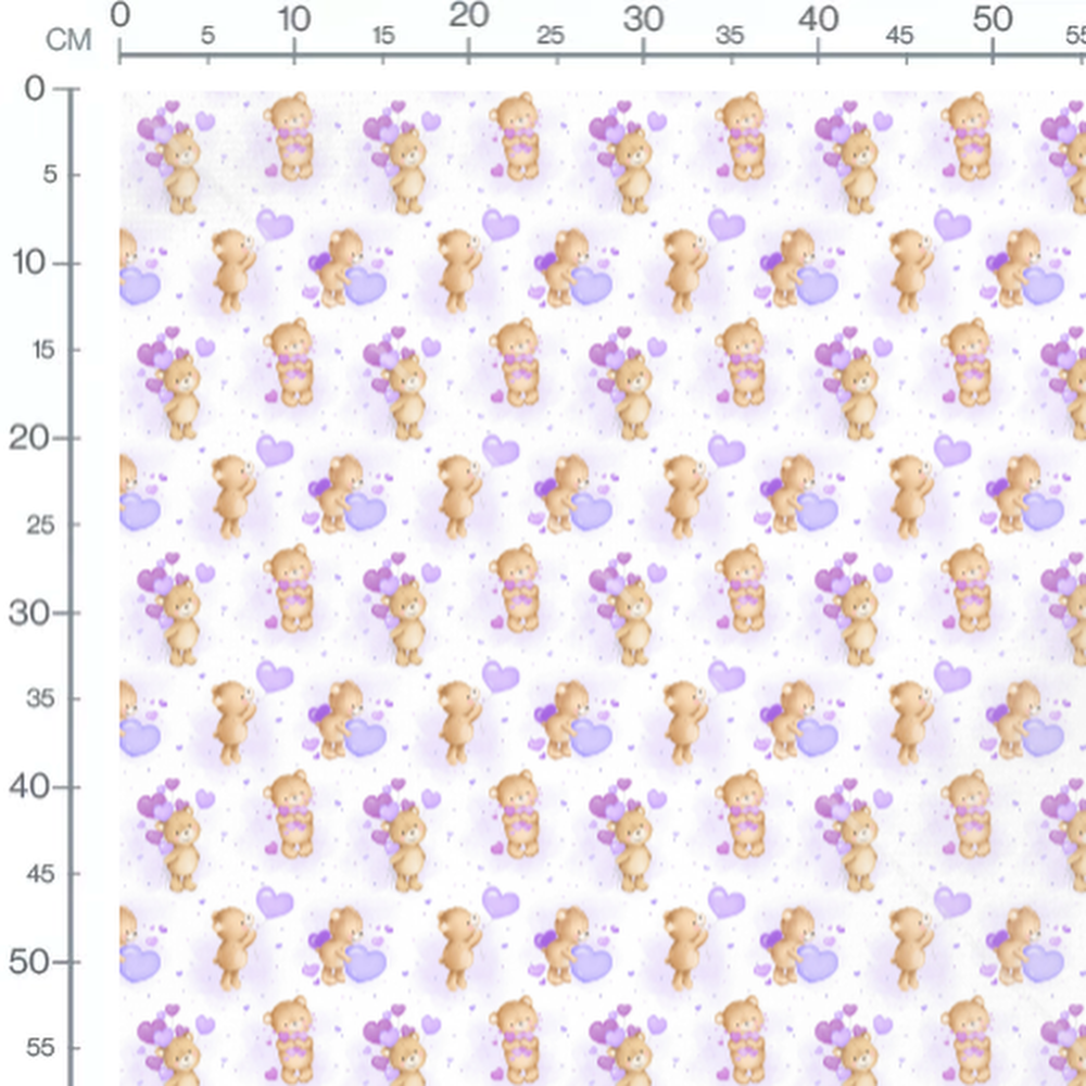 Tissu - Oursons et ballons violets