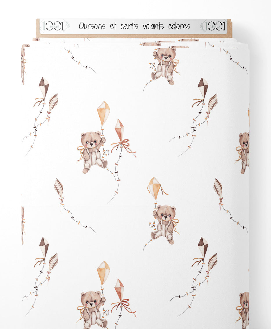 Tissu - Oursons et cerfs-volants colorés