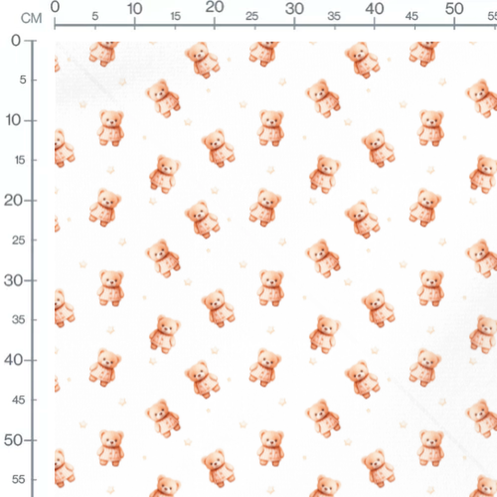 Les oursons portent des robes à carreaux dans des tons de beige. Les étoiles ajoutent une touche délicate au motif.Les tissus