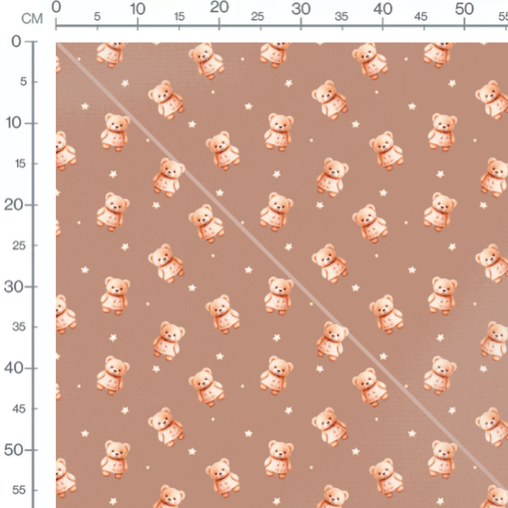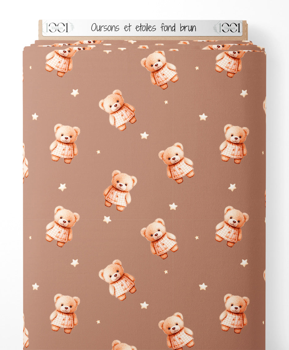 Les oursons portent des robes à carreaux orange et blanc. Les étoiles blanches ajoutent une touche délicate au motif.Les tissus