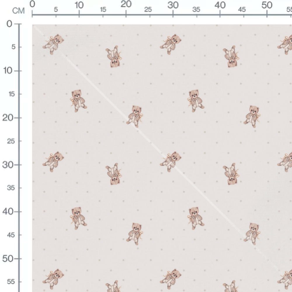 Les oursons portent des rubans autour du cou. Les pois sont uniformément répartis sur le fond.Les tissus