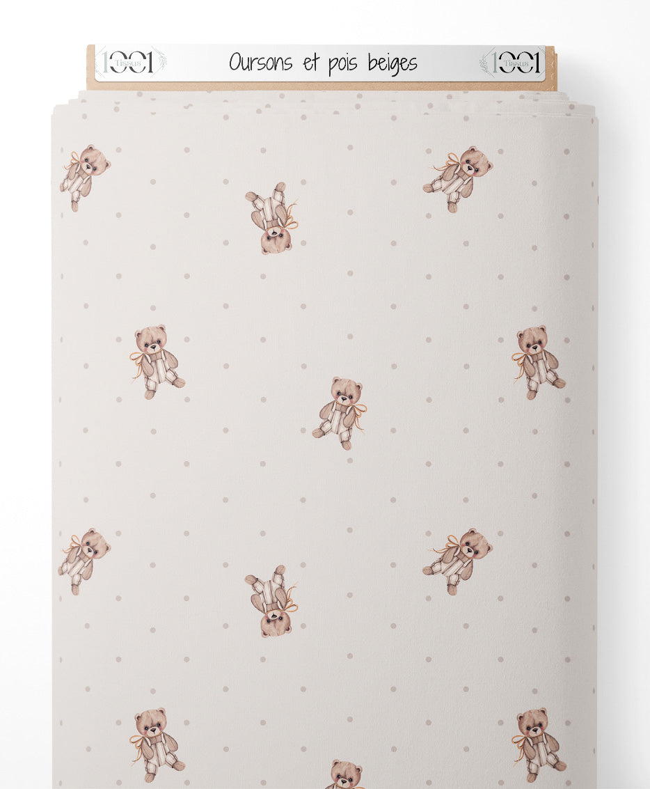 Tissu - Oursons et pois beiges