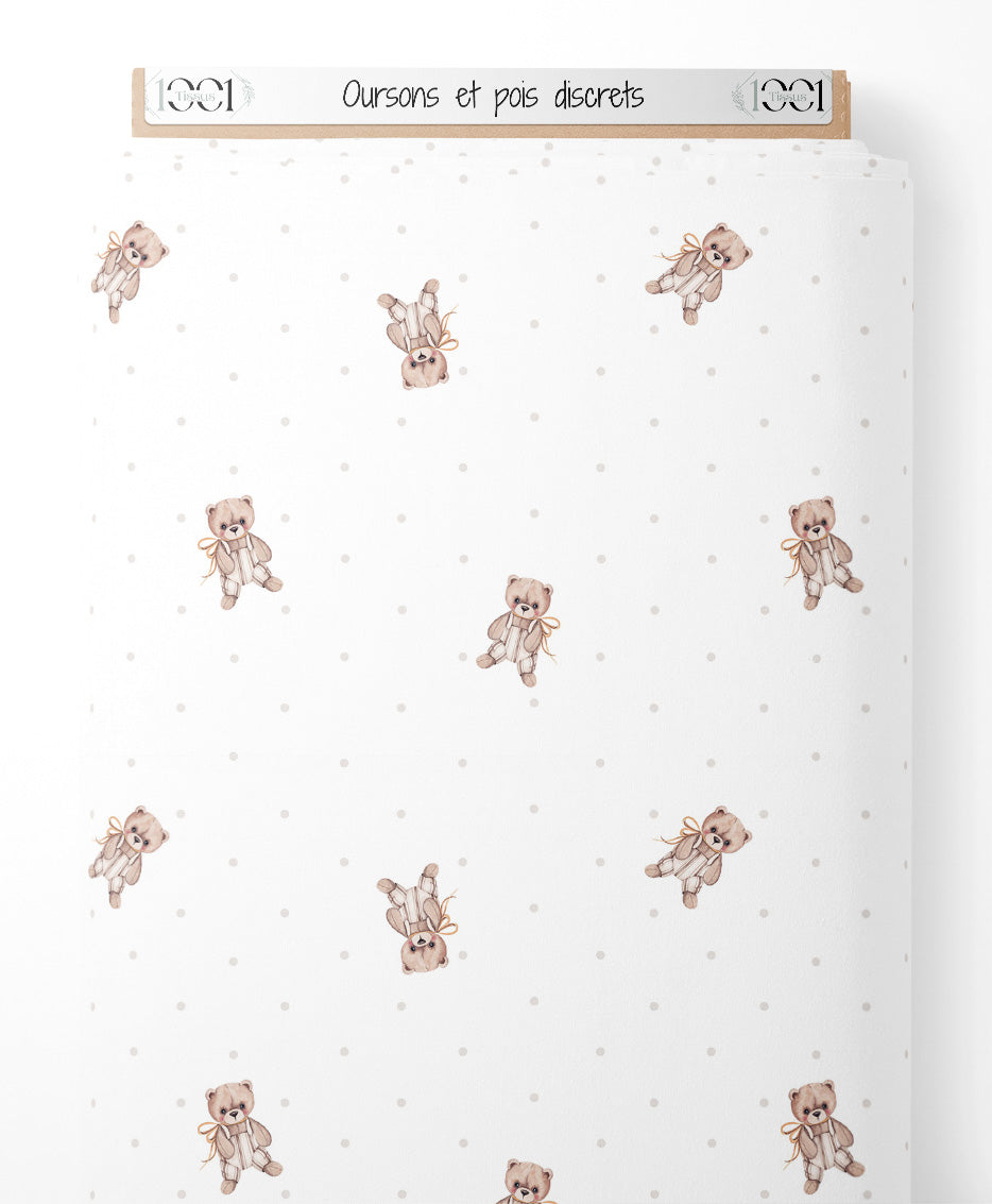 Tissu - Oursons et pois discrets