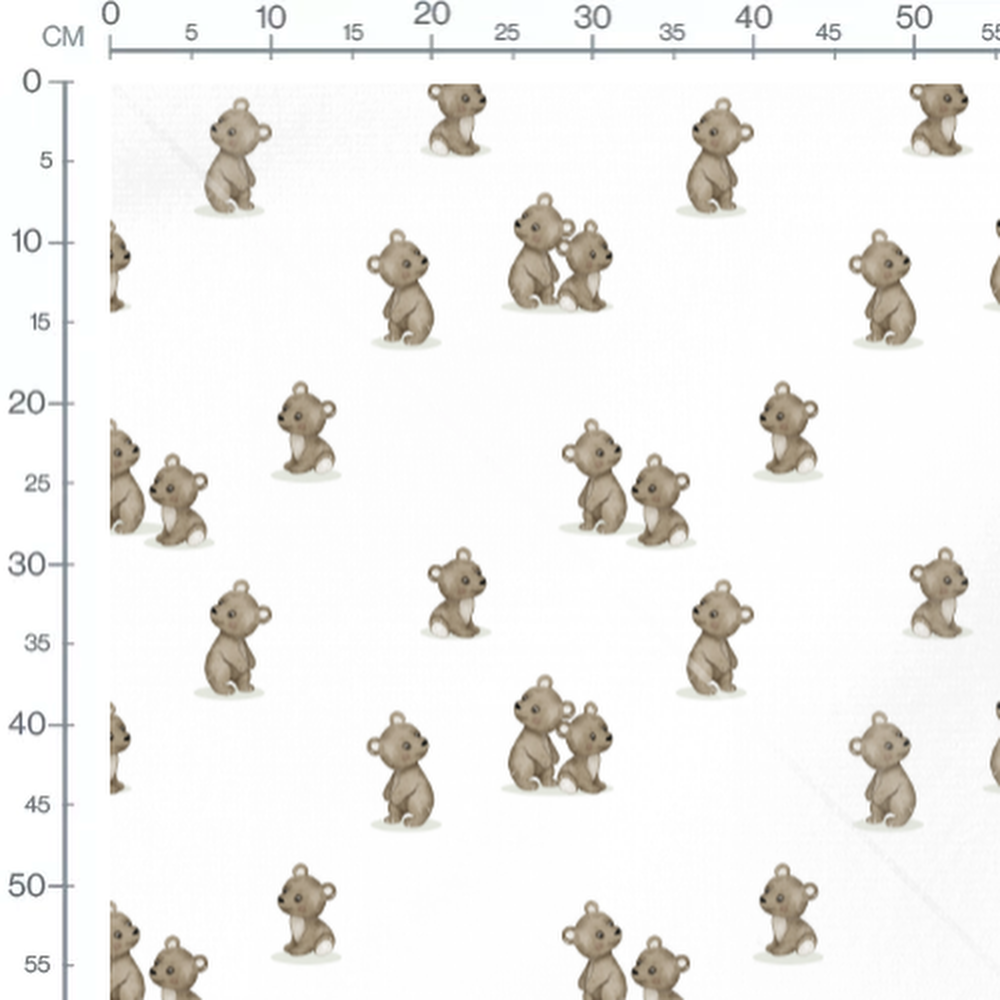Tissu - Oursons gris sur fond blanc