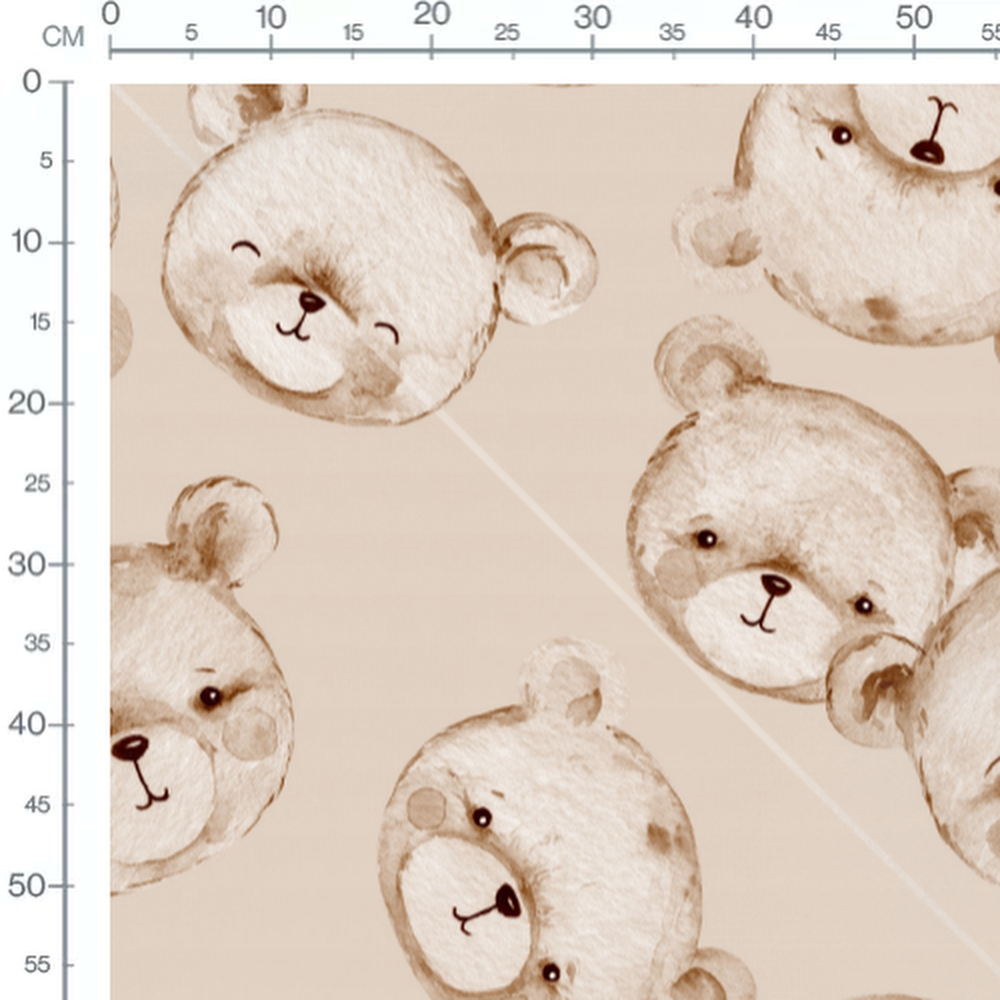 Les oursons présentent des nuances de marron et des détails doux. Le fond beige met en valeur les expressions joyeuses et endormies des oursons. Chaque ourson est unique avec des traits légèrement différents.Les tissus