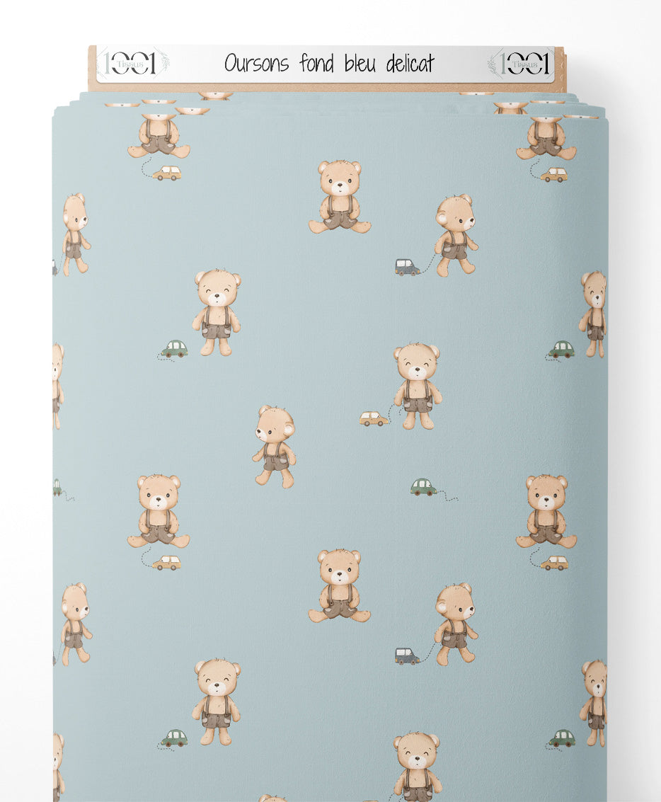 Tissu - Oursons sur fond bleu délicat