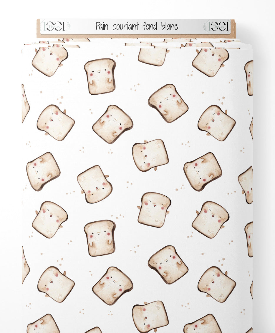 Tissu - Pain souriant sur fond blanc