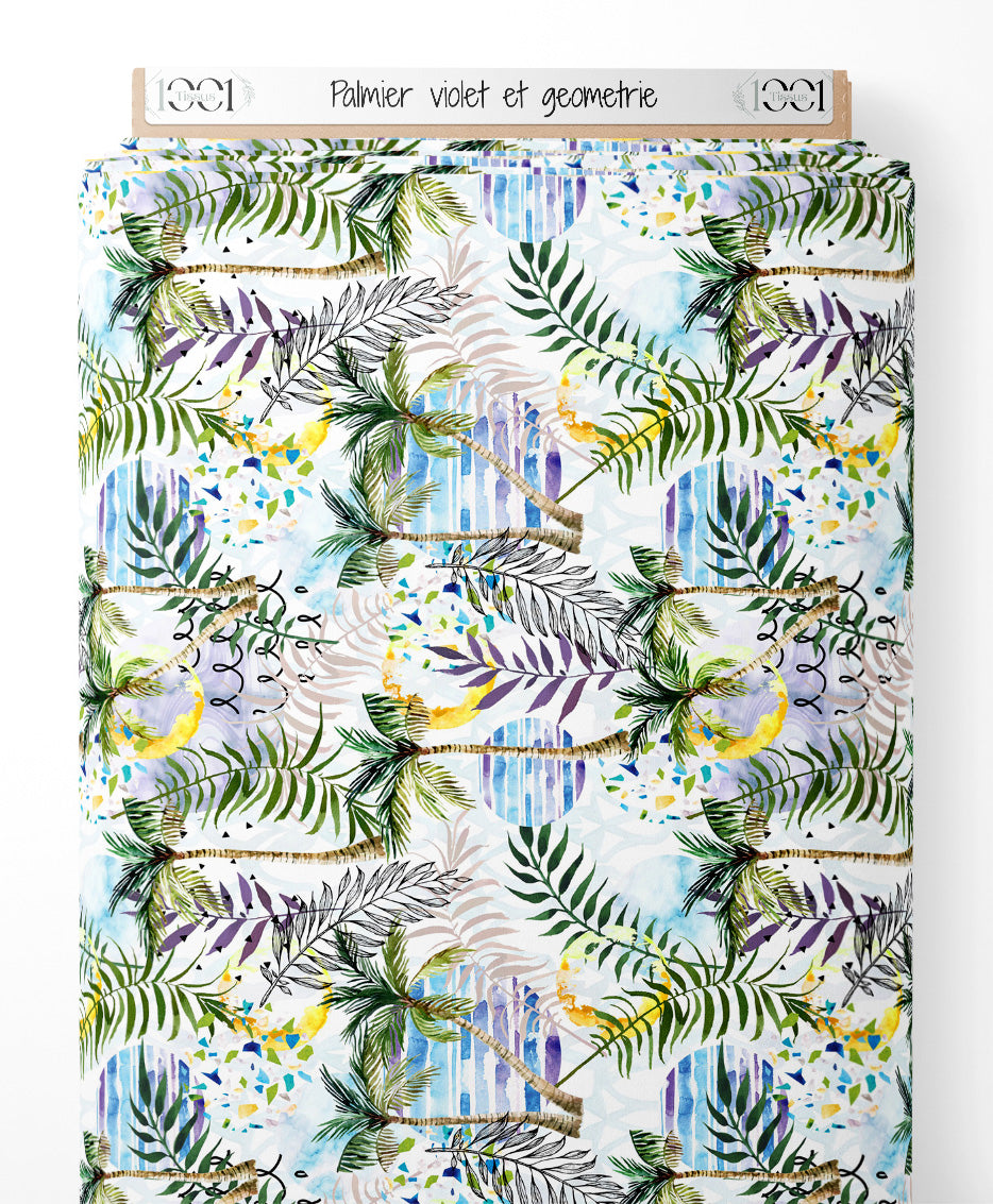 Tissu - Palmier violet et géométrie