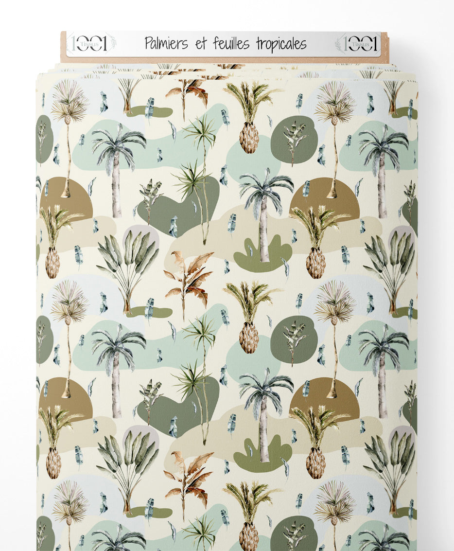 Tissu - Palmiers et feuilles tropicales