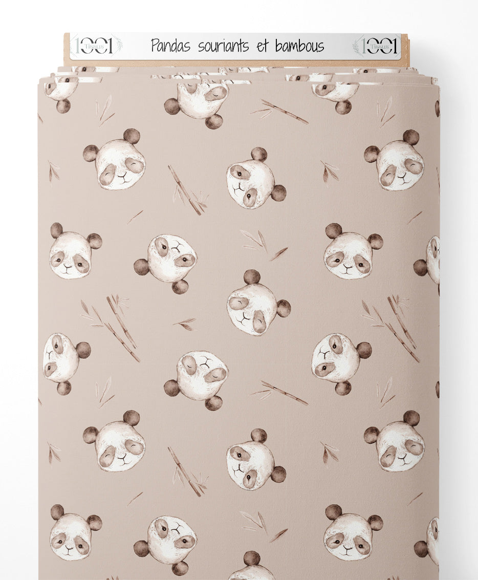 Tissu - Pandas souriants et bambous