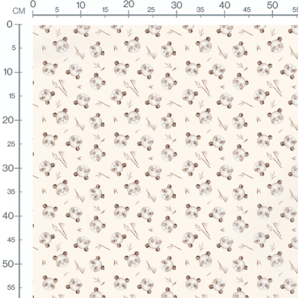 Têtes de pandas marron clair sur fond crème. Bambous et feuilles marron clair sur fond crème.Les tissus