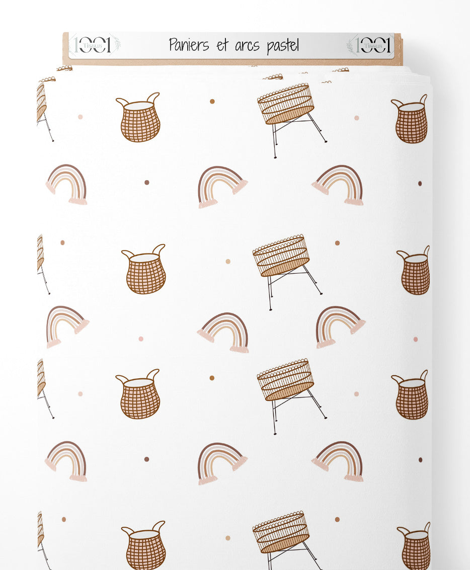 Tissu - Paniers et arcs pastel