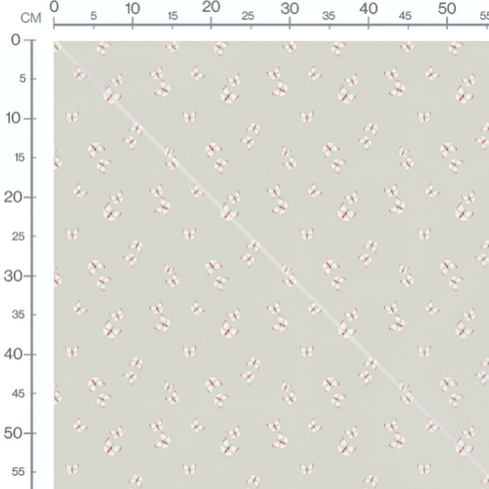 Les papillons présentent des ailes blanches ornées de motifs bruns. Le fond gris clair met en valeur la délicatesse des papillons.Les tissus
