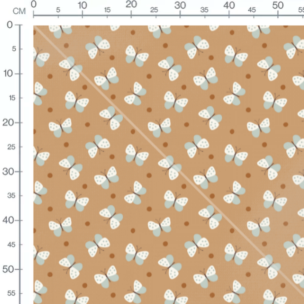Tissu - Papillons et pois marron