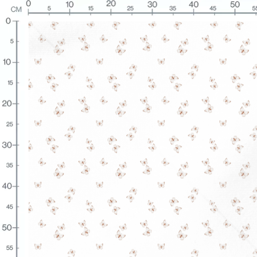 Les papillons présentent des ailes blanches avec des touches de brun. Le fond blanc met en valeur la délicatesse des motifs. Chaque papillon est dessiné avec des détails subtils.Les tissus