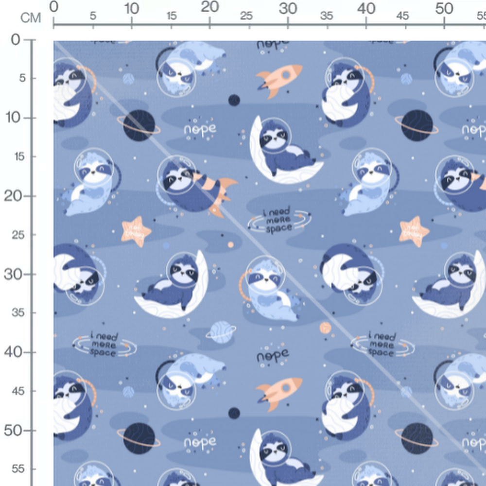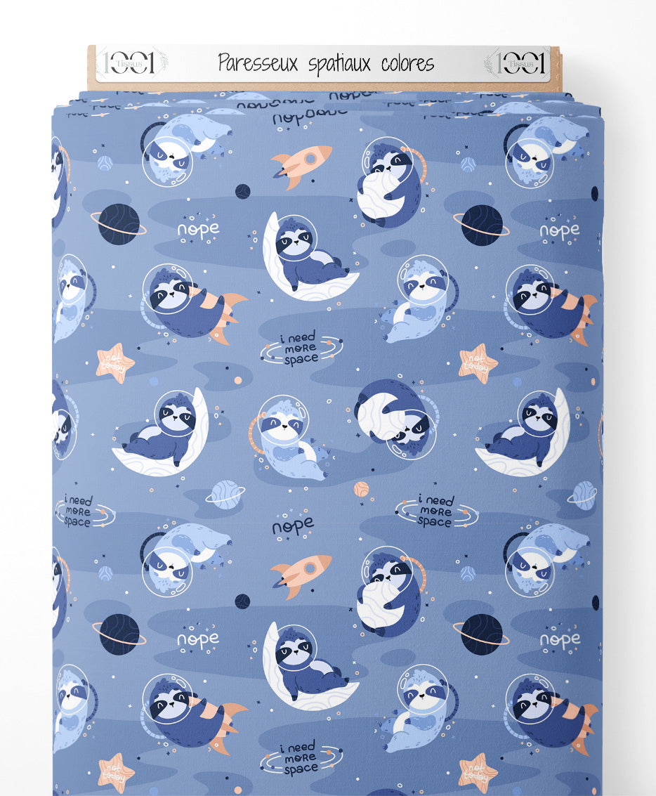 Les paresseux portent des casques d'astronaute. Des planètes et des étoiles entourent les paresseux dans un thème spatial.Les tissus
