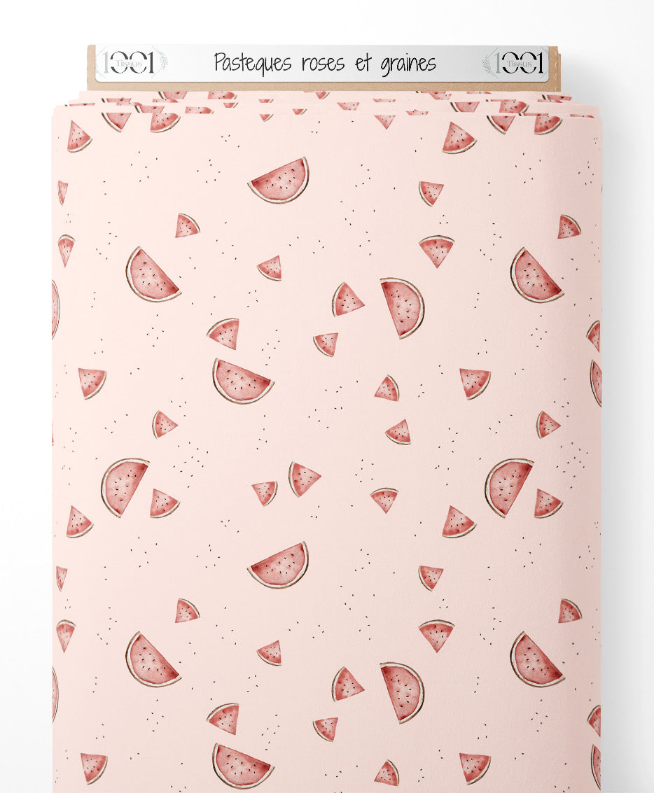 Tissu - Pastèques roses et graines