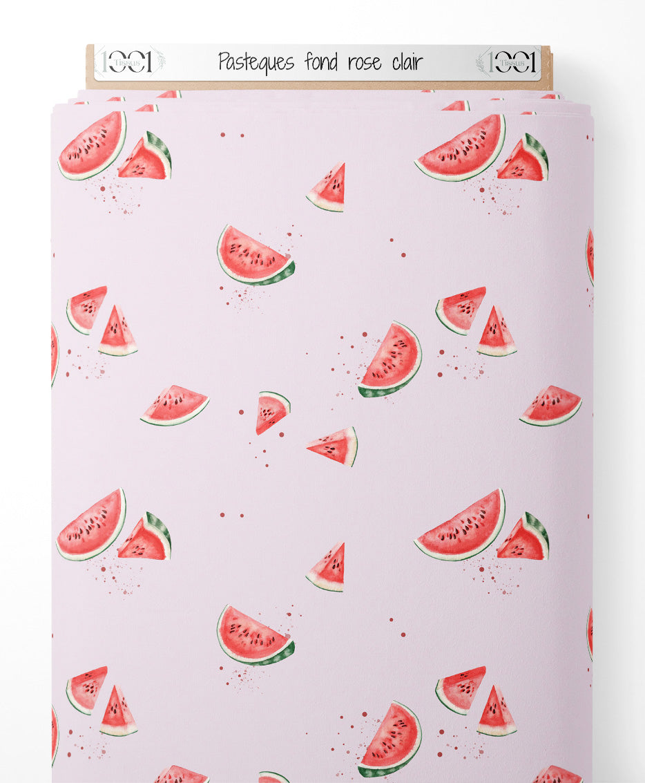 Tissu - Pastèques sur fond rose clair