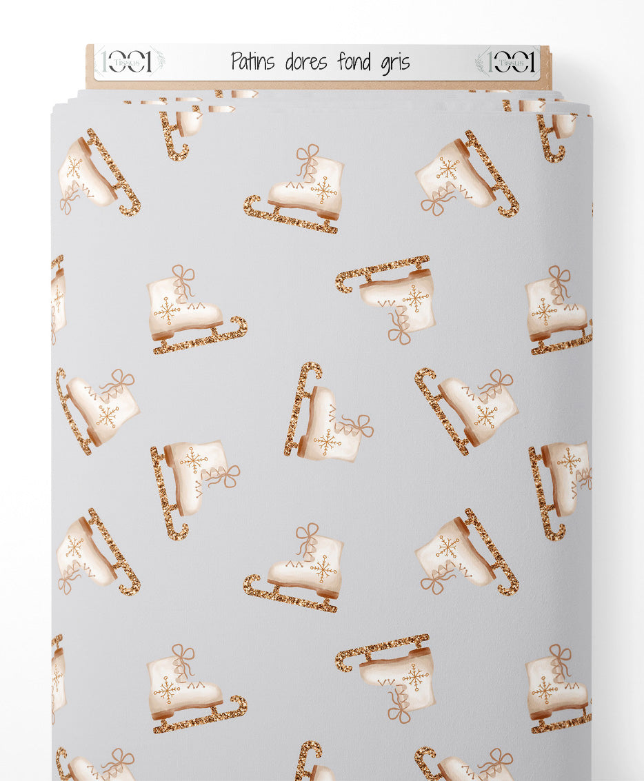 Tissu - Patins dorés sur fond gris